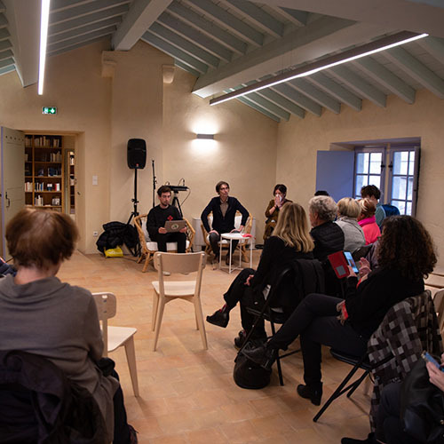 Afficher le planLes artistes en résidence, dans le cadre intimiste et chaleureux de a bibliothèque, livrent des bribes de leur projet en cours sous forme de lectures et d'échanges. Chaque Labo des résidents est construit sur la base du volontariat et en fonction de la pertinence d’un dialogue avec le public en fonction de l’avancement de leur projet. Les noms des participants sont connus le jour de la présentation.